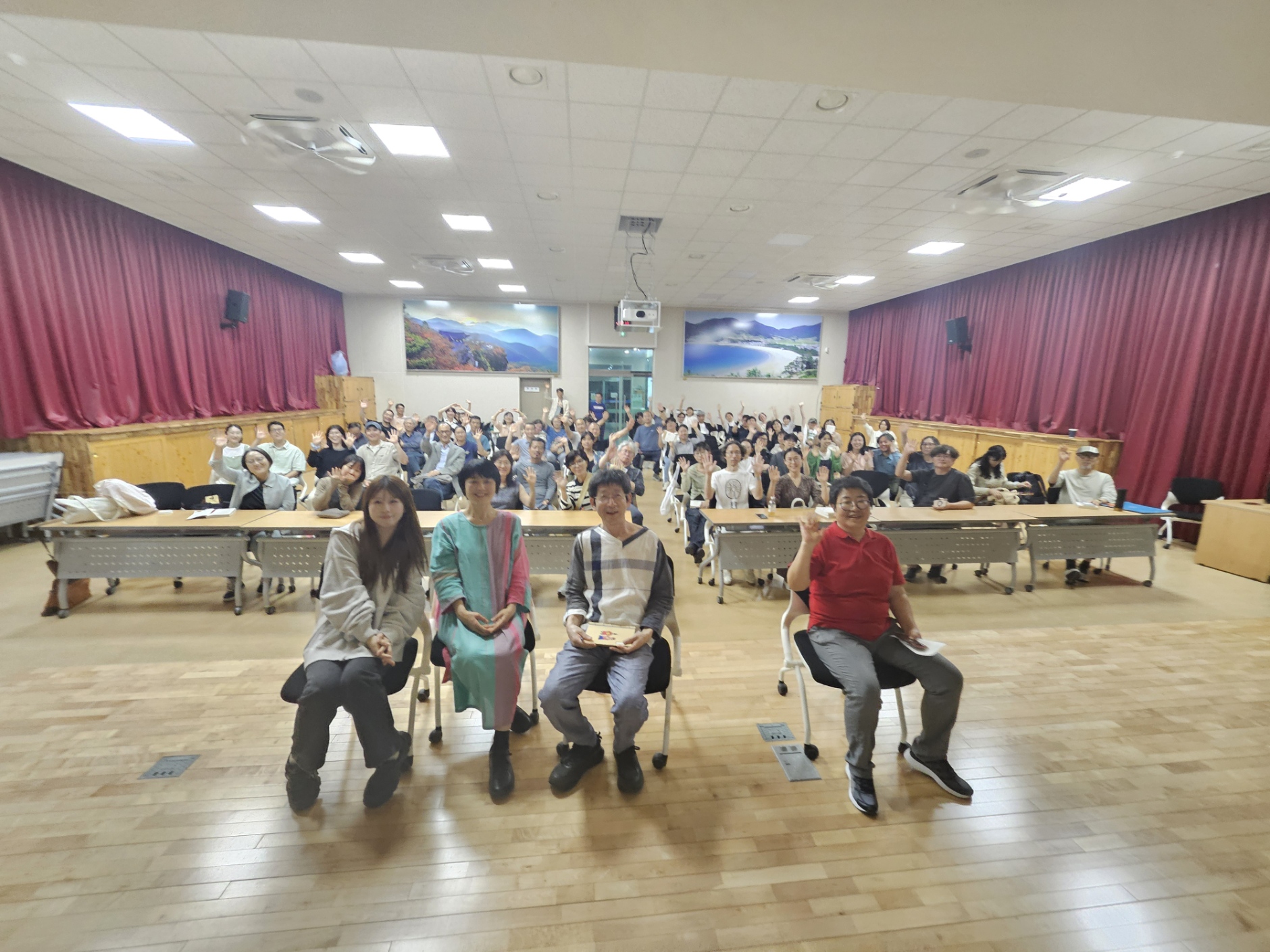 그렇습니다. 종합복지센터입니다. 그런데 저는 왜 주민자치센터로 장소 공지를 했단 말인가요. 이 오류를 북토크 열리기 2시간 전에 알았습니다. 책방엔 프린터기가 없어 옆집에 가 바뀐 주소를 크게 적은 포스터를 프린트합니다. 차를 몰고 주민자치센터로 갑니다. 달랑 한 장 뽑아왔습니다. 부족할 거 같습니다. 다시 차를 몰고 책방 옆집으로 가 프린트를 더 합니다. 그 전에 포스터 만들며 제가 한 삽질까지 설명하다가는 제 목을 조르고 싶어질 거 같아 생략합니다. 이날 북토크에 부산, 통영, 하동, 산청, 곡성 등지에서 64명이 왔습니다.