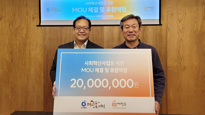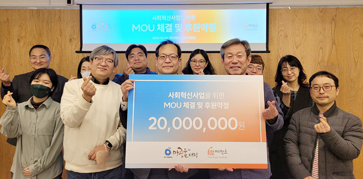 사회적기업인 주식회사 마중물대리는 고객들의 자발적 기부로 만든 2,000만 원을 희망제작소의 사회혁신사업과 제반 연구를 위해 사용해 달라고 기부하였습니다.