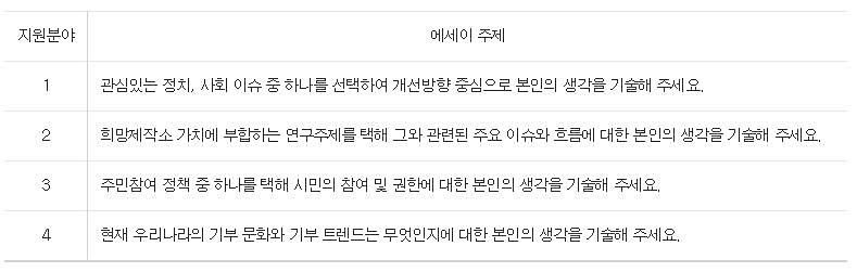 – 제출한 에세이는 서류심사 시 반영합니다.