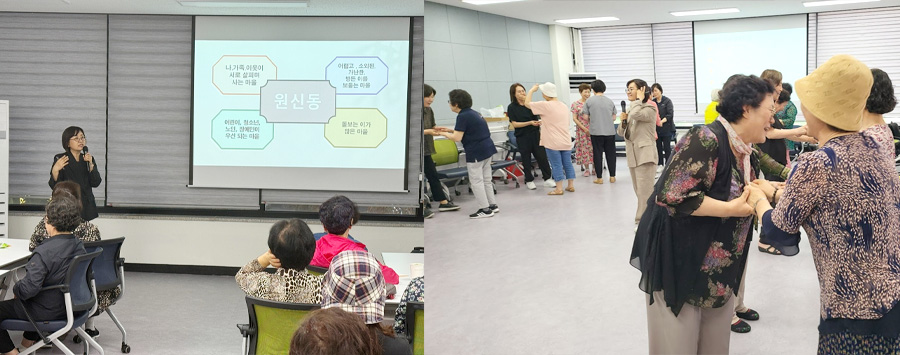 = 처음에는 봉사활동에서 만난 동료들과 계속 활동을 이어가고 싶어서 창업을 생각했어요. 중장년 동료들이 가진 전문성과 열정이 끊기지 않는 공간이 필요하다는 생각이 들었거든요. 저는 서울시 50플러스재단과 LH가 주최한 <신중년 도시재생 창업프로젝트 점프업5060> 지원하면서 먼 곳이 아니라 제가 살고 있는 곳에서부터 방법을 찾게 됐어요. 그런데 신원마을에는 저와 동료들이 일할 수 있는 복지관이나 문화센터가 거의 없더라고요. 신도시다보니 신혼부부, 청년가구가 많아 청년층 비율이 꽤 높고, 인구도 많은 편에 속하는 데도 개발제한구역이라는 이유 때문에 노유자 시설을 포함한 충분한 행정복지시설이 조성되지 못했어요. 게다가 이 동네는 고령화 속도가 평균보다 빠른 고양시 내에서도 특히 고령화 속도가 빨라 고령 인구가 더욱 많아요. 동네에서 만난 어르신들의 모습은 주로 길가 의자에 멍하니 앉아 계시거나, 하루 종일 아파트 단지 바깥을 돌아 다니다 집에 들어가시는 장면이었어요. 어르신들을 위한 프로그램, 문화 시설이 거의 없고, 정부 지원이 닿는 계층은 소수이고, 1인 가구는 늘어가는 상황을 지켜보면서, 소외와 고립으로 이어질 사각지대에 닿을 수 있는 지속 가능한 해법을 만들고 싶다는 마음이 커졌어요. 지역 내 돌봄 활동가도 양성하고, 동료들의 활동도 계속 이어지길 바라는 마음으로 '오늘도봄날'을 시작하게 되었습니다.