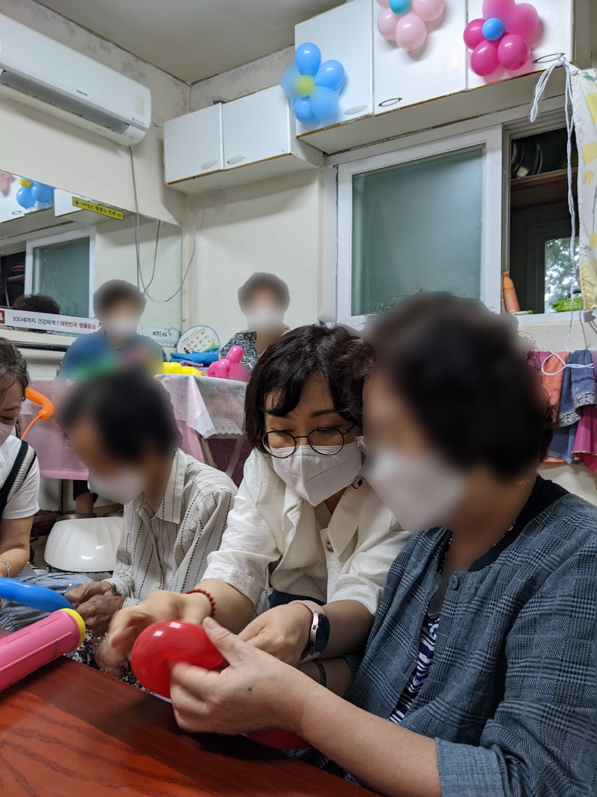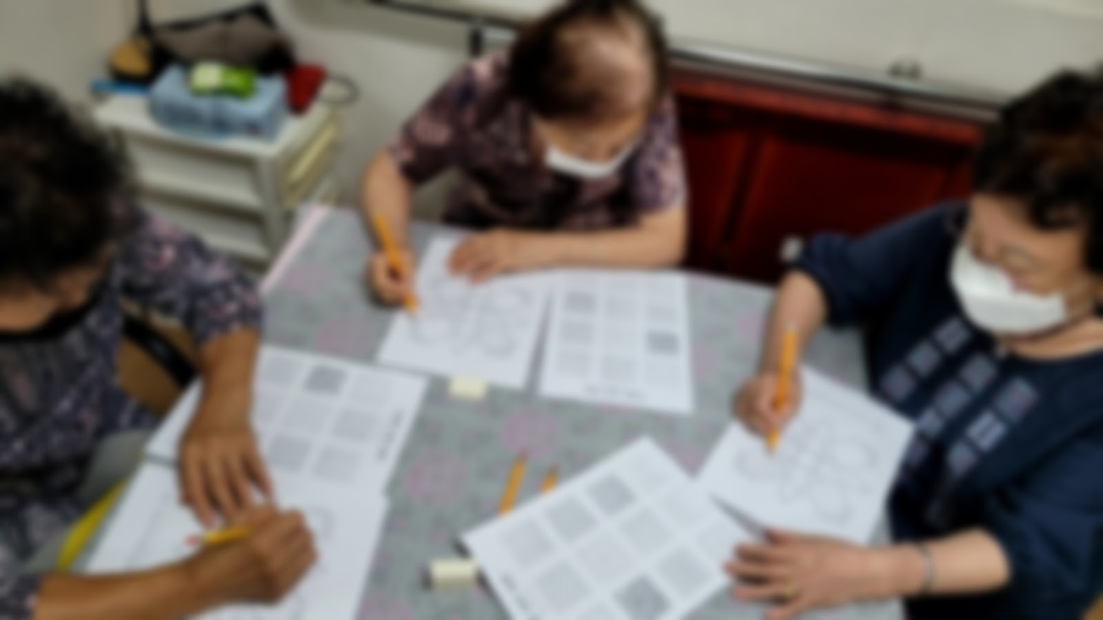 = ‘노인과 인지활동’에 대한 공부를 함께 하던 동료들과 ‘동행’ 이라는 이름으로 커뮤니티를 만들었어요. 처음엔 어르신들을 찾아뵙고 활동을 해보자는 맘으로 무작정 치매안심센터에 찾아갔죠. 부모님의 치매로 돌봄을 직면하게 된 시기였고, 교육으로 동기 부여도 된 상태니 더 이상 미루지 않고 뭐라도 해보자는 마음이 들었거든요. 용기를 내서 문을 두드렸는데, 당시 코로나로 모든 복지시설이 폐쇄되고, 방문 활동도 다 중단된 상태라 할 수 있는 게 없었어요. 그래도 어떤 식으로든 도울 수 있는 기회만 주시면 무슨 일이든 할 수 있다고 했어요. 외출도 못 하고 불편한 몸으로 집 안에만 계시느라 지치실 어르신들을 생각하니 조급한 마음도 들었거든요. 3개월 정도 기다렸더니 감사히도 한 곳에서 연락을 주셨어요. 어르신들께 코로나가 감염될수도 있는 상황이니, 2차 예방접종까지 마치고 마스크 두 겹을 착용한 채 2인 1조 팀으로 찾아가는 어르신 돌봄 서비스를 12회 정도 실행해봤어요.