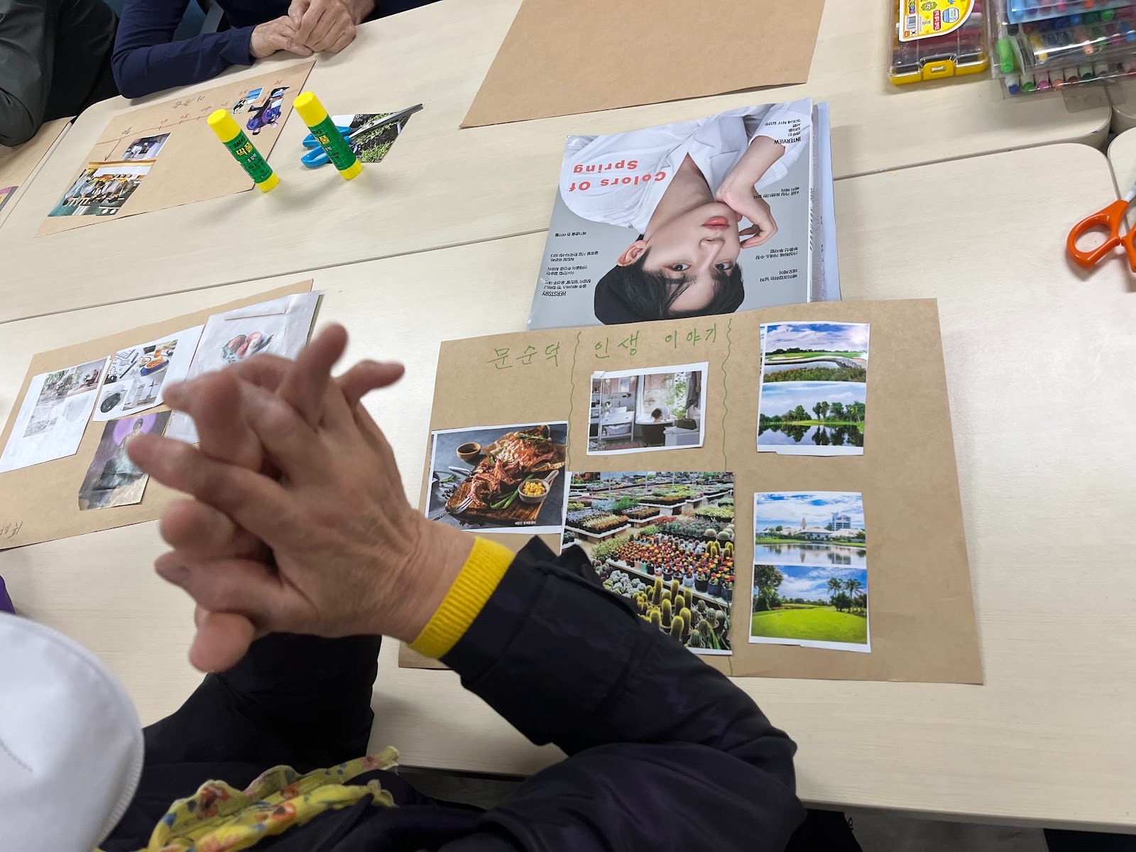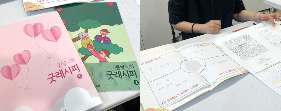 제가 어르신들과 함께 하는 활동과 교육에서 가장 중요하게 생각하는 건 자기돌봄이에요. 저는 이 분들이 지금까지 살아온 삶의 흐름을 돌아보고, 자기를 스스로 돌보면서 나이듦을 긍정하고 이해하며 받아들이는 순간들, 그리고 그 속에서 ‘자기존재감과 자기효능감’을 느끼고 발견하는 것이 핵심이라고 생각하거든요. 그래서 반복 훈련에만 머물지 않도록 ‘이야기’를 연결해요. “내가 가장 좋아하는 계절은?”, “다시 가보고 싶은 장소는”, “가장 행복했던 순간은?” 같은 소소한 질문을 차근차근 던지죠. 겉으로 보면 소박한 문항이라, 누군가는 평범한 교재라고 생각할 수도 있어요. 하지만 이런 질문에 답하며 어르신들이 스스로의 삶을 돌이켜보며 과거를 회상하고 자아를 찾아갈 수 있어요, 진짜 본인의 이야기를 하면 표정이 달라지고 목소리에도 힘이 붙어요. 나이가 들어서 하지 못 하게 된 일이 아니라, 젊을 때 하지 못했지만 지금 할 수 있게 된 일을 발견하게 되기도 하고요.